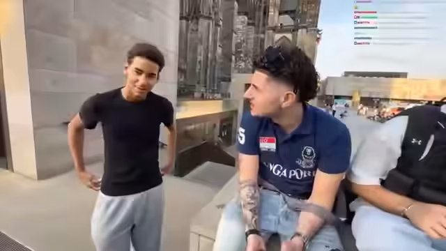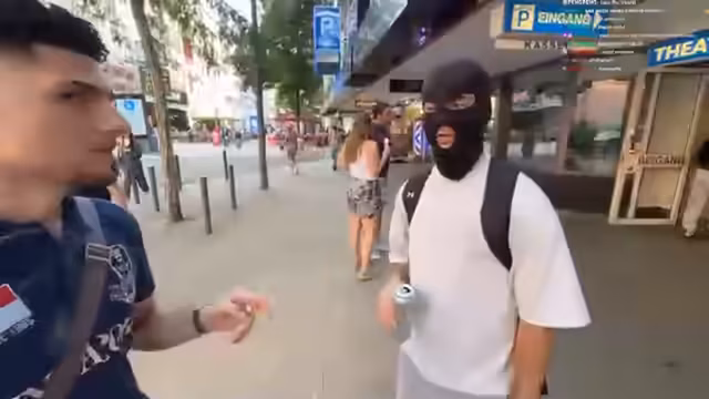03:25:16Der Streamer interviewt spontan Passanten auf der Straße. Er spricht mit einer Person namens Samu, die von TikTok bekannt ist, und deren Verhalten und Kontroversen besprochen werden. Anschließend kommt es zu einer angespannten Situation mit einer Person, die als Security fungieren soll. Es entsteht ein Konflikt über deren Rolle und ein mögliches Aufeinandertreffen, wobei der Streamer seine eigene Kampfkraft unter Beweis stellen will.