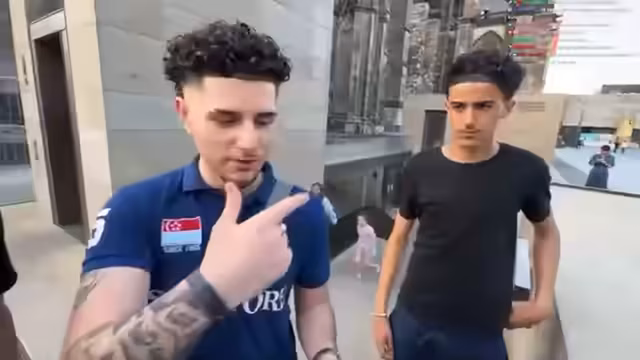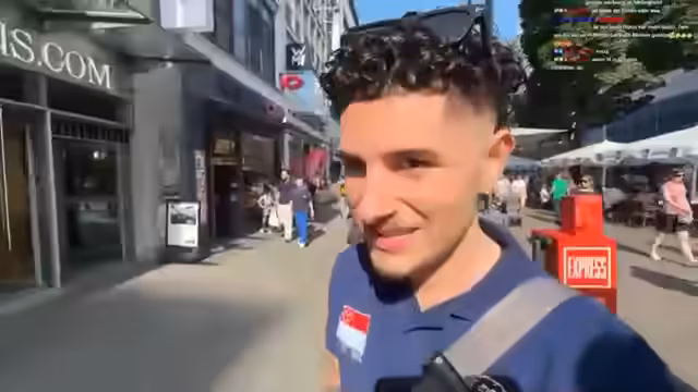 03:35:05Der Streamer spricht direkt mit Passanten, die sich in der Umgebung befinden, und fragt nach deren Meinung zu verschiedenen Themen, wie zum Beispiel der Fußballnationalelf und bekannten Persönlichkeiten. Er interagiert auch mit einer Person, die ihm als Freundin erscheint und die ihre Freund in der Öffentlichkeit belogen hat, was zu einem kurzen Streitgespräch führt.