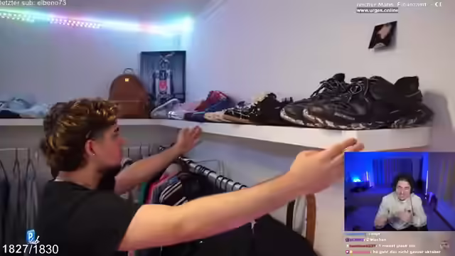 02:36:53Es werden technische Probleme mit dem PC erwähnt, der bei Überlastung das Interface ausschaltet. Emil zeigt Teppiche in seinem Zimmer, darunter einen von Temo und einen Better Call Saul Teppich. Er erklärt, dass er einige Sachen verkaufen möchte, darunter eine Balenciaga-Tasche, die er jedoch behalten will. Er zeigt Content-Sachen, Socken und Unterhosen. Es wird über türkische und kurdische Hochzeiten gesprochen, die ebenfalls als sehr krass beschrieben werden. Emil plant einen Urlaub vom 29. bis 6. in einem warmen Land, findet aber keine passenden Flüge. Er sortiert seine Klamotten nach Farben und spricht über seine Urges-Kollektion, die zwar nicht gefloppt ist, aber zu viel Kopffick verursacht. Er verdient lieber Geld mit entspannten Sachen. Er zeigt, wie er seine Jacken und Pullover nach Farben sortiert hat und die Hosen von weiß nach schwarz. Er erklärt, dass er das Bild an der Wand mit Tesafilm befestigt hat und Verbesserungsvorschläge willkommen sind.