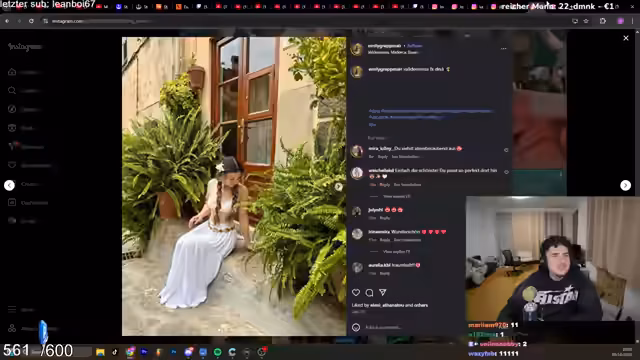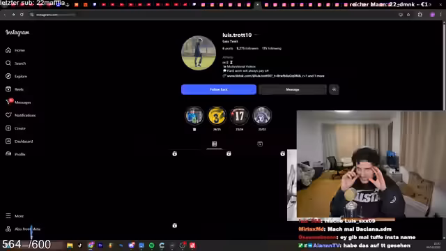 01:21:12Vadim wird disqualifiziert, weil er dem Streamer nicht folgt. Ein weiterer Account wird für seine Posts kritisiert, die eher an Facebook erinnern als an ein 'tough' Instagram-Profil. King Morty wird für seine 'toughen Haare, Goaty und Bart' sowie 'freshe Fits und Chains' gelobt, obwohl seine Highlights als schwach empfunden werden. Carlos Silva Assis wird für sein junges Alter und seine 'W-Confidence' anerkannt, aber sein Account wird nicht als gut genug für die 'Tierliste' befunden. Ein weiterer Account wird disqualifiziert, da er nicht das Gesuchte ist, obwohl Respekt für seine berufliche Arbeit ausgedrückt wird. Verena wird als 'Top 3 Zuschauerin all time' bezeichnet und ihr Account als cool bewertet, obwohl sie nicht viele Posts hat. The Black Mock Crow wird für seinen 'tough' ersten Post gelobt, aber weitere Posts werden als zu gestellt empfunden. Yasin wird übersprungen, da er dem Streamer nicht folgt. Ein Account mit Balenci-Striker-Boots und Chrome Cap wird wegen fehlender Posts kritisiert. Der Streamer überlegt, wieder mehr Reels zu posten, um seine Followerzahl zu erhöhen. Angela wird für ihre 'taffen Bilder' gelobt und bleibt im Rennen. Igor wird für sein Facebook-ähnliches Profil kritisiert. Icy Sammy wird zunächst disqualifiziert, da sie nicht folgt, dann aber wieder zugelassen, als sie folgt. Ihr Account wird als 'UFO-Glaserin' beschrieben. Ein Fake-Account und ein Account mit zu vielen Kinderbildern werden abgelehnt. Der Streamer fordert die Zuschauer auf, erneut zu kommentieren, um neue Accounts zu bewerten und den Gewinner zu finden.