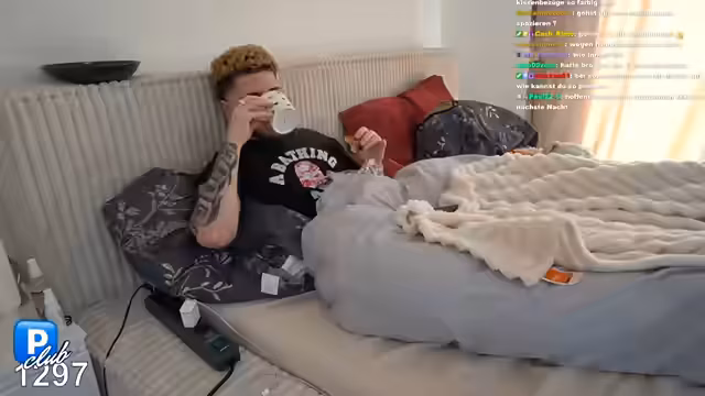 00:07:08Der Streamer teilt kuriose Geschichten aus seinem Alltag, darunter einen Prank mit einem Furzspray, der von einer ADHS-Frau in seinem Bett durchgeführt wurde. Er zeigt verschiedene Gegenstände in seiner Umgebung, darunter Kissenspray, ein pinkes Spielzeug und eine Verpackung von Durex. Die Thematik wechselt zwischen persönlichen Stories und Reaktionen auf Chatkommentare, wobei der Streamer seine unkonventionelle Lebensweise humorvoll darstellt.