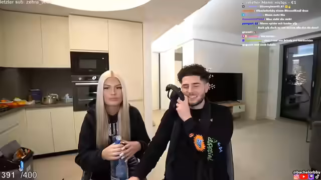 02:40:53Bachelor bewertet einen Zuschauer als süß und schätzt sein Alter auf 15. Er grüßt mehrere Fan-Namen wie Max, Wilhelm, Joel und Marina. Ein Zuschauer fragt nach den Möglichkeiten, 'Urges' zu erhalten, worauf Bachelor auf Selbstbewusstsein und Aussehen verweist. Die Interaktion bleibt locker und humorvoll.