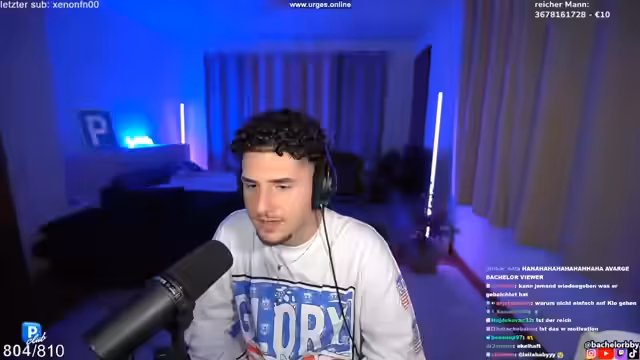 02:45:34Der Streamer beginnt mit einer Reihe von spontanen musikalischen Einlagen und Wortspielen. Er rappt über Themen wie Reichtum, 'Cancel Culture' und einen 'Money Dance', wobei sich wiederkehrende Phrasen wie 'Finde mich Handsome, 50k' und 'Diese Bitch ist ein Addict' finden. Der Stil ist chaotisch und setzt sich aus improvisierten Zeilen, vielen Wiederholungen und vulgären Ausdrücken zusammen. Er testet verschiedene Sounds und Beat-Adlibs, was einen rohen, ungeschliffenen Charakter hat und eher an eine spontane Jam-Session als an einen fertigen Song erinnert.