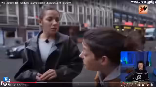 02:23:07Der Streamer diskutiert die prekäre Drogenszene im Frankfurter Bahnhofsviertel. Er schildert, dass der Drogenhandel trotz Polizeikontrollen weiterhin floriert und dass Heroin zunehmend mit dem tödlichen Opioid Fentanyl gestreckt wird. Er berichtet von einem Vorfall, bei dem eine Frau an einer Fentanyl-Überdose vor seinen Augen starb, was ihn nachhaltig beeindruckte hat.