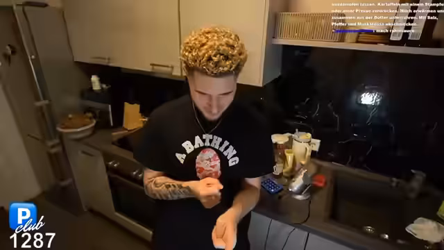 00:40:05Nachdem die Planung für die Lauchsuppe aufgrund fehlender Zutaten scheitert, wechselt der Streamer spontan zum Kochen von Kartoffelbrei. Er beschreibt dabei die Zubereitungsschritte, die er teilweise aus dem Chat abliest. Gleichzeitig äußert er seine Unzufriedenheit mit dem komplexen Prozess und den vielen Schritten, was zu einer humorvollen und selbstironischen Diskussion über seine Kochkünste und das Kartoffelschälen führt.