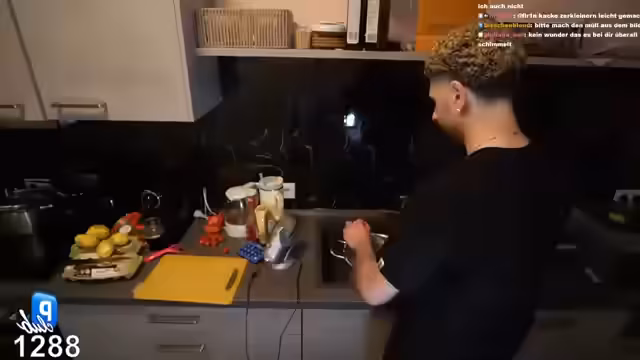 00:02:01Der Streamer beginnt mit seinem ersten Kochstream und ist sichtlich überwältigt von der Umgebung, da er noch nie live aus der Küche gestreamt hat. Er präsentiert seine neue, als modern und gut ausgestattet beschriebene Küche, die im Vergleich zu seiner alten bei der Mutter als riesiger Upgrade empfunden wird, insbesondere aufgrund der Vorhandenheit einer Spülmaschine, die er als essenziell bezeichnet. Die Küche wird als Rumäne Trap House humorvoll erwähnt.
