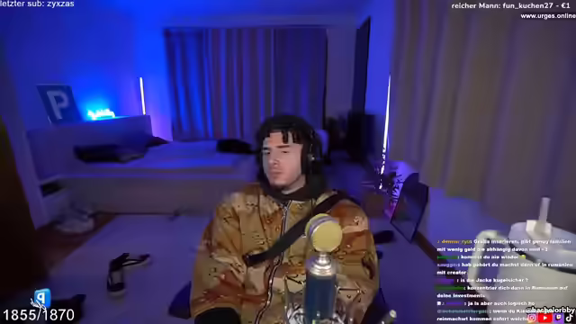 00:01:15Es wird Bruder Senno für seine Erfolge, insbesondere das Erreichen von 100.000 monatlichen Hörern und den Erfolg seines Songs, der nach seinem Auftritt im Stream des Streamers veröffentlicht wurde, gratuliert. Der Streamer freut sich sehr über Sennos Erfolg und betont, wie sehr er sich darüber gefreut hat. Anschließend spricht er über eine Chrome Hearts Jacke, die er von Ufo361 als Geschenk erhalten hat. Er beschreibt die Jacke als ein außergewöhnliches Geschenk und drückt seine Freude und Dankbarkeit gegenüber Ufo361 aus. Er erwähnt, dass er sich gewünscht hat, so eine Jacke zu besitzen, nachdem er Ufo361 in einem Video gesehen hat, in dem dieser Klamotten verschenkt. Die Jacke wird als sehr wertvoll und besonders beschrieben, was die Freude des Streamers noch verstärkt. Er betont, dass er noch nie so ein krasses Geschenk bekommen hat und dass die Jacke etwa 6.000 Euro kostet. Er erwähnt, dass er sich gefragt hat, warum die Jacke so weit ist, aber dann gecheckt hat, dass die meisten Leute, die diese Jacke haben, sich diese holen und darunter ein Hoodie tragen, weswegen die Jacke so "Ding" ist.