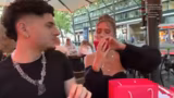 00:14:00Auf dem Weg zum Essen geht die Unterhaltung tiefer in persönliche Details über Paula. Sie gibt an, 21 Jahre alt zu sein und Geburtstag am 13. Mai zu haben. Ihre bisherigen Jobs waren im Krankenhaus (UKM). Es wird über ihre sozialen Medien gesprochen: Sie hat auf TikTok über 500.000 Follower und auf Instagram 40.000, wobei sie ihre DMs nicht mehr alle liest. Sie betont, sie werde niemals einen OnlyFans-Account erstellen. Die beiden treffen einen Kollegen namens Saku und es wird klargestellt, dass sie nur Freunde sind. Paulas Vorlieben werden besprochen: Sie steht auf 'Light Skins', findet Juden Bellinger 'fresh' und mag Fußballer. Sie tanzt 'Belly Dance' nur für TikTok-Videos.
