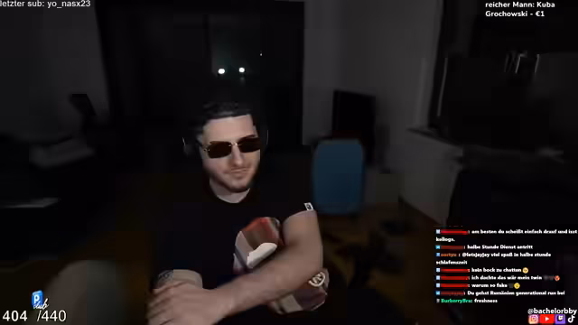 01:58:55Die Stimmung wechselt, als der Streamer offenbart, dass ein Song, den er vor über einem Jahr gemacht hat und noch nie öffentlich gespielt hat, unerwartet von der Person 'Gina Leitschek' im Nachhinein gehört wurde. Das unerwartete Feedback führt zu einer leichten Verwirrung, da er den Song selbst nicht feiert. Dies unterbricht den raplastigen Flow und zeigt die Verbindung zwischen seinen Texten und dem realen Publikum.
