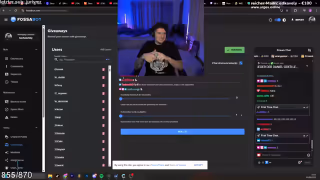 01:43:23Als Reaktion auf die aufgebaute Spannung und im Anschluss an die Diskussion wird ein spontanes Giveaway angekündigt. Dabei wird ein Preis von 100 Euro an einen Zuschauer verlost, der im Chat ein 'L' spammt. Der Gewinner wird durch einen Zufallsgenerator ausgewählt und aufgefordert, sich per Instagram oder über die Mods zu melden, um das Preisgeld zu erhalten.