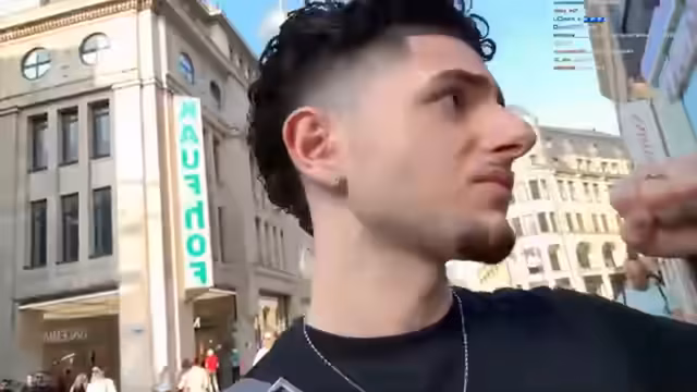 00:01:54Während eines Spaziergangs durch die Innenstadt von Köln wird der Streamer von Zuschauern erkannt und angesprochen. Dabei kommt es zu einem kurzen Dialog mit einem jungen Mädchen, über deren Alter eine kurze, angespannte Diskussion im Chat entbrennt. Der Streamer schildert, wie er durch die Menge navigiert und versucht, den Stream fortzuführen, während die Menge um ihn herum wächst und für Ablenkung sorgt.