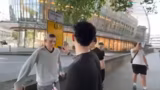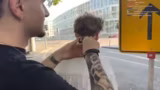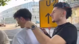 00:15:07Auf Anregung aus dem Chat und passend zum Streamertitel beginnt der Streamer, Passanten die Haare zu schneiden. Der erste Kunde ist ein junger Mann namens Jasper, der einen Low-Taper-Face wünscht. Der Streamer improvisiert mit einer tragbaren Schürze und einer elektrischen Schermaschine, während Zuschauer den Vorgang umringen und teilweise filmen. Das improvisierte Setup stößt auf großes Interesse im Chat.
