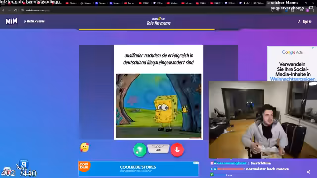00:00:48Der Stream startet direkt mit der Planung eines Make-It-Meme-Spiels mit den Teilnehmern Theo, Emil, Alex und weiteren Personen. Streamer bachelorbby hat Schwierigkeiten, den korrekten Discord-Server für das Spiel zu finden, was zu einer anfänglichen Verwirrung führt. Chatmitglieder geben Hilfestellungen, und es wird ein Link zum Discord versendet, der jedoch nicht sofort funktioniert. Der Streamer drängt darauf, mit dem Spiel zu beginnen, während technische und organisatorische Unstimmigkeiten die ersten Minuten prägen.