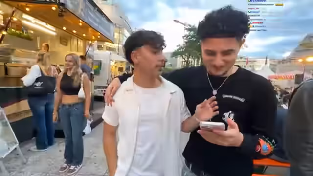 01:37:38Der Streamer und seine Begleitung gehen durch die Straßen von Frankfurt und interagieren mit Passanten. Es werden Fotos gemacht und Gespräche geführt. Der Streamer erwähnt, dass sie 100 Zuschauer mehr haben und dass eine Person 'Baddie-Gang' genannt wird. Es gibt eine Diskussion über Altersangaben und der Streamer fragt, wie alt die Zuschauer ihn schätzen. Die Unterhaltung ist geprägt von lockerer Atmosphäre und spontanen Begegnungen.