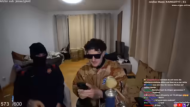 01:09:03Die Situation im Studio eskaliert, als ein Bier 'gepoppt' wird und der gesamte Boden mit Bier überschwemmt wird. Dieses Ereignis führt zu allgemeinem Chaos und Belustigung. Die Teilnehmer kommentieren die 'Junkie-Video'-Ästhetik und vergleichen die Szene mit einem Bahnhof. Es wird die Frage aufgeworfen, wie Yussi, der Streamer, dieses Material hochladen konnte. Die Forderung, den Boden zu putzen, wird laut, und es wird humorvoll angemerkt, dass 'wer trappen kann, kann auch putzen'. Die Szene wird als 'Gangsthet' und 'schlägen' beschrieben, was die ungezwungene und chaotische Natur des Live-Streams unterstreicht. Die Teilnehmer sind amüsiert über die Situation, auch wenn sie die Professionalität des Formats in Frage stellt. Die Stimmung ist ausgelassen und unkontrolliert, was zu weiteren unkonventionellen Kommentaren führt.