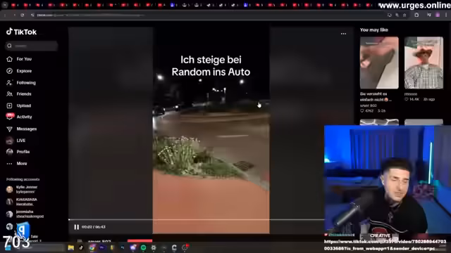 01:57:04Ein großer Teil des Streams besteht aus dem Anschauen und Kommentieren von zufällig von Chatmitgliedern geschickten TikToks. Diese Clips reichen von skurrilen 'Lost Place'-Aufnahmen über Influencer-Dramen bis hin zu humorvollen Inhalten. Eine persönliche Erkenntnis teilt der Streamer, als er eine Person aus seiner Vergangenheit wiedererkennt und sich fragt, ob er ein seltsames Gedächtnis hat. Er reflektiert auch über seine eigene Aktivität und stellt fest, dass er viel Zeit zu Hause verbringt, was ihn manchmal als 'langweilig' erscheinen lässt, für ihn aber Entspannung bedeutet.