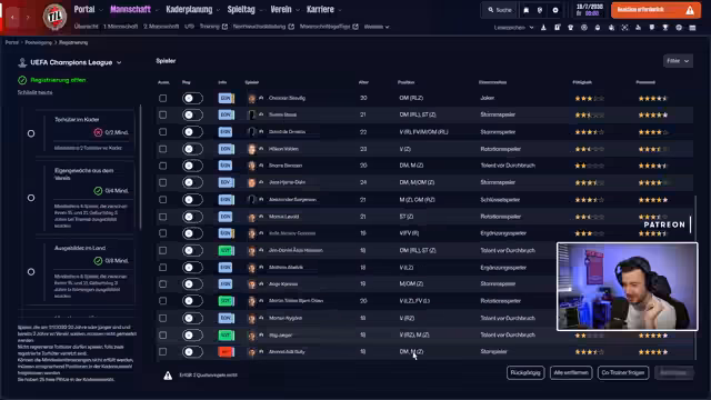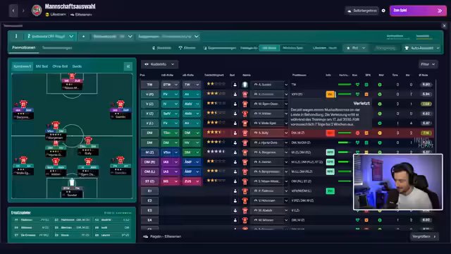 01:47:28Im Fokus stehen die aktuellen sportlichen Herausforderungen im Football Manager 26. Nach einem Sieg in der Qualifikation steht das entscheidende Match gegen Nizza an. Ein Sieg würde die Teilnahme an den Playoffs für die Champions League bedeuten, während eine Niederlage immer noch die Europa League sichern würde. Der Streamer analysiert die Spieltaktik und äußert Zuversicht, trotz der schwierigen Ausgangslage. Es wird die Hoffnung auf einen Erfolg in der dritten Qualifikationsrunde formuliert.