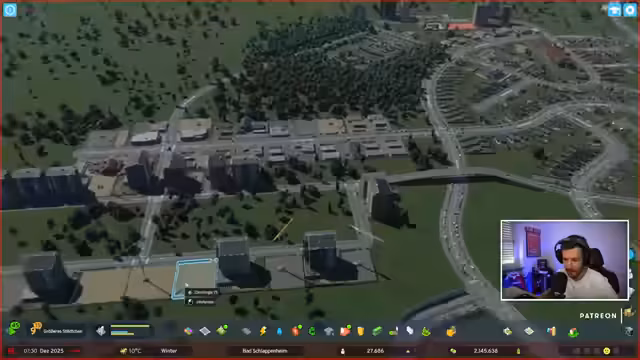 01:45:56Der Stream widmet sich der fortlaufenden Gestaltung seiner Stadt 'Bad Schlappenheim'. Fokus liegt auf der Anbindung neuer Areale, insbesondere der Bau eines Grand Hotels mit Wasserblick und die Entwicklung einer Vorortregion. Hierbei werden vorwiegend schmale Straßen und Kurven favorisiert, um eine organischere und weniger monotone Stadtstruktur zu schaffen. Parallel werden grundlegende Infrastrukturelemente wie Polizeistationen, Feuerwachen und Rathauses geplant, um die wachsenden Bedürfnisse der Bevölkerung zu decken.