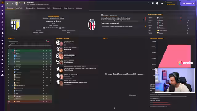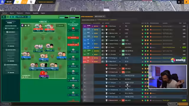01:25:03Es folgt eine kurze Analyse der taktischen Ausrichtung des Klubs, wobei betont wird, dass Parma eigentlich keinen dringenden Bedarf für einen solchen Talk habe. Die wichtigsten anstehenden Spiele gegen Cremonese, Pisa, Cagliari und Genua werden hervorgehoben, in denen Punkte geholt werden müssen, während alles andere als Bonus betrachtet wird. Nach einem Rauswurf bei Calcio darf jeder zum Abschied mit Parmaschinken winken. Es wird festgestellt, dass Windricks in der Datenbank falsch dargestellt ist, was aber als irrelevant abgetan wird. Zudem wird die Ausfallzeit wichtiger Spieler wie Friegan (drei bis vier Wochen) und Prato (zehn Tage bis drei Wochen) thematisiert, während die Rückkehr von Suzuki in etwa sieben Tagen bis zwei Wochen erwartet wird, passend zum Spiel gegen Verona in 13 Tagen. Es wird über die generelle Ausrichtung gesprochen, weg vom klassischen hinten reinstellen hin zu mutigerem Spiel mit Kontern. Verletzungen erschweren die Situation, aber Spieler wie Suzuki, Bernabe, Keita und Bonaventura werden als stark hervorgehoben, wobei überlegt wird, wie man sie am besten einsetzt. Bonaventura könnte als vorgeschobener Spielmacher auf 'Unterstützen' agieren. Es wird auch die Möglichkeit diskutiert, Cater als Abräumer und Segundo Volante einzusetzen, was in Kombination sehr effektiv sein könnte. Im Sturm muss eine Lösung gefunden werden, da aktuell keiner trifft, wobei Freegun aufgrund seiner Aggressivität bevorzugt würde, aber auch er fällt aus.