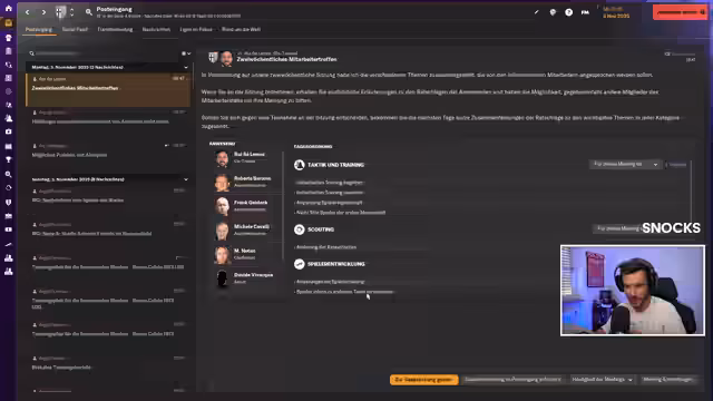 01:43:15Der Streamer teilt einen Link zu einem FM-Taktikkanal im Chat und spricht über den Release von FM 26 am 4. November. Er überlegt, Valeri auf den Flügeln entweder auf Unterstützung (für diagonale Stahlpässe) oder auf Angriff (für breite Angriffe und Flanken von der Grundlinie) einzusetzen. Er tendiert dazu, Valeri auf Unterstützung zu setzen, erwägt aber, individuelle Anweisungen zu geben, um ihn bei Bedarf zur Grundlinie ziehen zu lassen. Im Sturm soll Freegun als pressender Stürmer agieren, unterstützt von Milan Dudic. Es wird kurz die Frage diskutiert, wie viele Fanschals von verschiedenen Vereinen akzeptabel sind. Der Streamer plant, einen Zielspieler auf Angriff zu spielen, was er selten zuvor getan hat. Pellegrino wird als möglicher Kandidat für diese Rolle in Betracht gezogen. Die aktuelle Mannschaftsaufstellung wird vorgestellt, wobei Suzuki aufgrund seiner Verletzung noch nicht eingesetzt wird. Hohe Flanken und Standards werden beibehalten, aber ansonsten sollen die Spieler relativ wenige Anweisungen erhalten. Es wird überlegt, geduldig zu spielen, die Innenverteidiger anzuspielen und die Außenverteidiger breit agieren zu lassen. Die Pressingauslösung wird erhöht und die Zweikämpfe werden angepasst. Der Streamer entscheidet sich für eine 3-5-2 Formation, da sie besser klingt. Er gibt den Halbraumverteidigern die Anweisung, seltener zu dribbeln und bei Flanken alle Richtung Zielspieler zu spielen. Der Sechser soll ebenfalls mit weniger Risiko spielen. Die Außenverteidiger sollen breit machen und häufiger dribbeln, aber seltener schießen. Der zentrale Mittelfeldspieler Toto soll ohne spezifische Anweisungen sein Spiel machen.