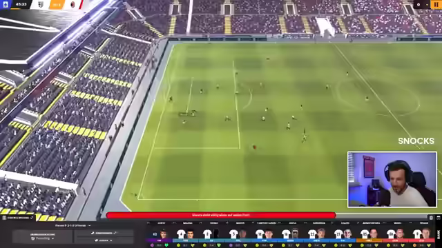 02:42:04Die Spielsituation erfordert höchste Konzentration, nachdem ein Gegentreffer zum 2:2 fast die Nerven gekostet hat. Suzuki zeigt sich als zuverlässiger Rückhalt, während Njai und Valeri mit schönen Spielaufbauaktionen glänzen. Valenti überrascht mit Dribbling-Fähigkeiten, die fast zu einem Elfmeter führen. Trotz eines verbleibenden Wechsels zögert der Streamer, die IV auseinanderzureißen, da Troilo eine durchwachsene Leistung zeigt. Stattdessen wird überlegt, Duric aus der Offensive zu nehmen und Mr. Zickzack zu bringen, während Kau positionsfremd als Flügelverteidiger agiert. Valeri soll trotz seiner bereits erbrachten Leistung durchhalten, um die defensive Stabilität nicht zu gefährden. Spielverzögerung wird eingesetzt, und ein Freistoß durch Circati und Pellegrino bringt Valenti in eine gute Position. Das Ziel ist klar: irgendwie die drei Punkte mitnehmen, wobei Zirkati und Niasse wichtige Aktionen zeigen. In der 90. Minute muss NJ aufpassen, und Esteves klärt eine brenzlige Situation. Valeri sichert den Ball, und fünf Minuten Nachspielzeit beginnen. Am Ende reicht es, um seit langer Zeit wieder ein wichtiges Spiel zu gewinnen.