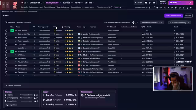 03:09:15Der Streamer spricht über Mitarbeiter, insbesondere René Möö, der einen Kaffee-Päuschen machen möchte. Er erwähnt, dass er einen Kaffee trinken wird, um die Community teilhaben zu lassen. Er geht auf die Scouting-Strategien ein, insbesondere auf die Suche nach Wunderkindern in verschiedenen Regionen wie Südamerika und Nordamerika. Er betont, dass er die Scouting-Fokusse anpassen und die Mitarbeiter-Tätigkeit überwachen wird.