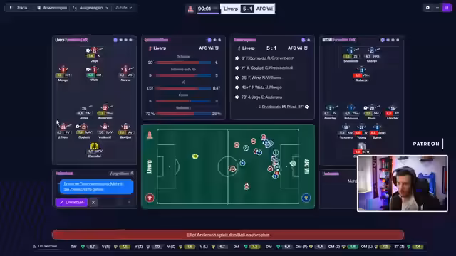 01:30:29Während des Streams treten wiederholt technische Probleme auf, insbesondere mit der Hardware, was zu Unterbrechungen führt. Der Streamer berichtet über private Veränderungen, die bevorstehen, darunter ein Umzug in den nächsten 2,5 Monaten und die anschließende Reparatur des Computers. Gleichzeitig werden gute Wünsche für eine bevorstehende Operation eines Zuschauers ausgetauscht. Der Fokus bleibt jedoch auf dem Spiel, insbesondere auf den jüngeren Spielern wie Florian Würz, der ins Rollen gebracht werden soll.