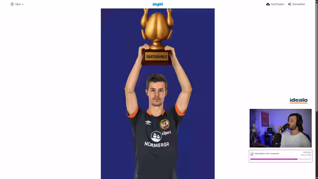 00:12:31Der Streamer begrüßt die Zuschauer am Mittwochabend, dem 12. November 2025, um 18:13 Uhr zum zweiten Stream des Tages. Er scherzt über seinen erhöhten Konsum von Monster Energy und begrüßt einige Zuschauer namentlich. Er erwähnt, dass sie den original norwegischen Pokal zugeschickt bekommen haben, der sich als Trophäe vom F-Junioren Turnier 2003 der DJK Sportfreunde Langwasser entpuppt, was für allgemeine Belustigung sorgt. Der Streamer geht kurz auf eine neue FM-Story auf dem Discord-Server ein und erwähnt eine hohe Rechnung für sein Auto, die ihn daran hindert, alle Storys zu lesen. Er zeigt ein KI-generiertes Bild des norwegischen Pokals, das er als Frechheit empfindet, da es wie ein Brathähnchen aussieht.