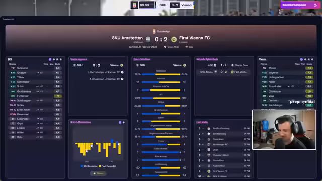 03:31:45Während des Spiels gegen Wolfsberger AC wird die taktische Ausrichtung mehrfach angepasst. Vom 3-4-1-2 über ein 4-2-2-2 bis hin zu einem 3-5-2 wird probiert. Der Fokus liegt auf einer stabilen Defensive und konsequentem Gegenangriff. Spieler wie Chai-Kun und Untergrabner werden flexibel eingesetzt. Die analysierten und getesteten Taktiken sollen zur zukünftigen Grundausrichtung der Mannschaft gehören und gespeichert werden.