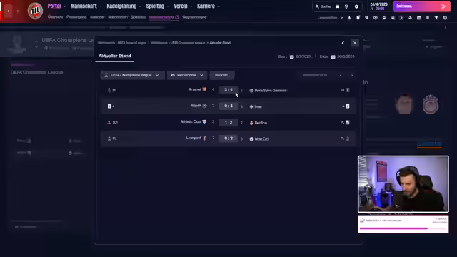 05:25:46Der Streamer teilt seine Freude an den frühen Abendstunden, wenn es dunkel wird und man beim Spazierengehen in beleuchtete Wohnzimmer blicken kann, was er als „reinspitzen“ bezeichnet. Er berichtet von seinen Transfers im Spiel, Ali Luhn und Benni Goller, und äußert seinen Frust über die Schwierigkeiten beim Aufstieg. Ein Telefonklingeln führt zu einem humorvollen Zwischenruf über eine vermeintliche Hausdurchsuchung durch die Polizei Westvorstadt, was die Zuschauer kurzzeitig amüsiert. Nach einer kurzen Unterbrechung, die er mit der Suche nach Ruhe rechtfertigt, beklagt er die jüngsten Niederlagen im Spiel, insbesondere im Mai, und plant, die Taktik und Aufstellung komplett zu überarbeiten, um die Krise zu beenden. Er erwähnt auch eine problematische Klausel seines Vorgängers bei Genua, die ihm das Transferbudget raubt und eine defensivere Spielweise erfordert.