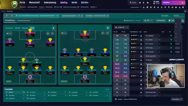 02:55:41Die Aufmerksamkeit richtet sich nun auf den neuen Kader bei Den Haag. Zunächst wird der Torwart analysiert, wobei "Reflexe 8" als kritisch angesehen wird, da der Keeper erst reagiert, wenn der Ball bereits im Netz ist. Auch die Innen- und Außenverteidigung wird begutachtet. Ein potenzieller Kandidat ist der junge Talent Navajo van Gönta, der jedoch noch Verletzungspause hat. Es werden auch strategische Überlegungen angestellt, wie der Kader ideal besetzt werden kann, um die defensive Stabilität der vorherigen Saison zu bewahren.