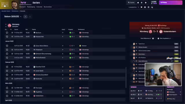 00:21:59Nach derzeitigem Spielstand des Streams zeigt der Streamer große Vorfreude auf eine geplante Simulation der verbleibenden Spieltage der Saison 2025/26 im Football Manager 26. Er plant, zehn verschiedene Simulationen durchzuführen, um mögliche Szenarien für den BVB, Schalke und den TSV Havelse zu analysieren und diese Insights im Stream zu präsentieren.