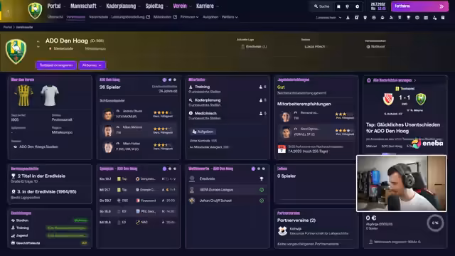 02:13:56Der Wechsel ist perfekt. Lukas Hösch wird als neuer Cheftrainer von Ado Den Haag vorgestellt. Der Streamer präsentiert das Vereinslogo, den Stadionnamen Cars Jeans Stadium und die Vereinsgeschichte, die bis ins Jahr 1905 zurückreicht. Es wird auf ehemalige Spieler wie Tim Krul und Legenden wie Ernst Happel eingegangen.