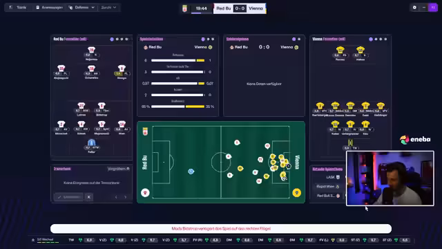 03:18:29Die Vorbereitung auf das Spiel gegen Red Bull Salzburg wird als defensiv ausgerichtet beschrieben. Die Taktik soll das Pressing des Gegners umgehen und auf Konter setzen. Die Verletzungslage bei Vienna ist prekär, mit sieben Spielern auf der Bank. Trotzdem wird ein Bunker-Taktik gegen den starken Gegner als realistische Strategie angesehen, um wenigstens einen Punkt mitzunehmen.