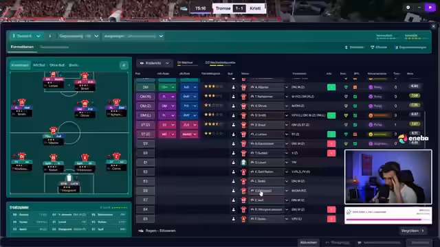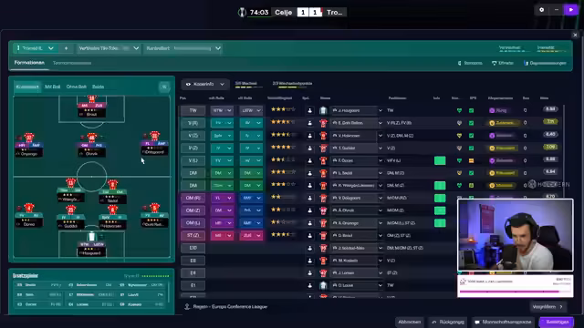 01:02:53Der Streamer bereitet sich auf ein wichtiges Conference League-Spiel vor, nachdem das Team aus den ersten beiden Spielen zwei Unentschieden geholt hat. Das Ziel ist, zwei Siege aus den verbleibenden vier Spielen zu holen, um die Zwischenrunde zu erreichen. Eine überraschende Nachricht aus dem Chat ist, dass Bode Glimt, ein norwegischer Konkurrent, die Bayern geschlagen hat, was im Kontext der 5-Jahres-Wertung positiv, aber im nationalen Wettbewerb eher negativ für das eigene Team ist. Der Streamer entscheidet sich, dem 18-jährigen Talent Mikkelsen sein Startelf-Debüt zu geben, was die Community mit Spannung verfolgt. Trotz eines frühen Rückstands im Spiel gegen Zelje kämpft das Team weiter. Eine Verletzung von Adek Benro zwingt zu einem frühen Wechsel, was die taktische Planung zusätzlich erschwert. Die Atmosphäre bleibt jedoch positiv, und die Community unterstützt das Team weiterhin.