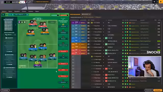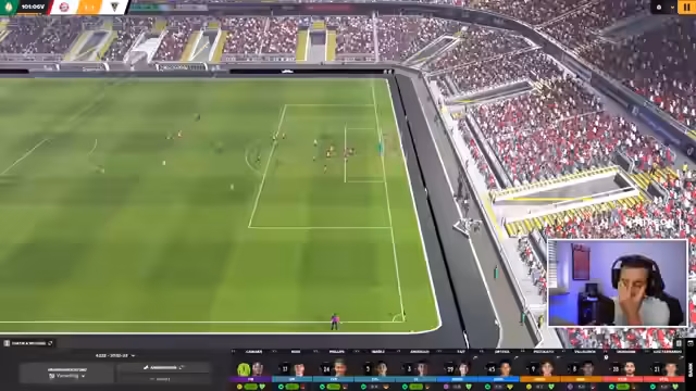 01:19:41Das Spiel gegen Samsun Spor beginnt, wobei die eigene Mannschaft als klar Favorit gilt. Trotz kontrollierter Leistung mit hohem Ballbesitz und guter Defensive bleiben Torchancen zunächst aus. Der Gegner erarbeitet sich nach und nach Chancen. Gegen Ende der ersten Halbzeit wechselt der Streamer die Offensivspieler Villalobos und Castelli ein, um mehr Dynamik zu erzeugen. Nach der Pause wird das Spiel weiter dominiert, ein erstes Tor gelingt jedoch nicht.