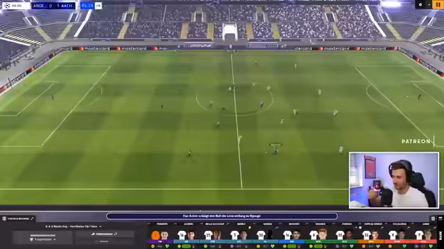 00:40:44Der Streamer simuliert sein Champions-League-Spiel gegen Anderlecht, das er mit 3:0 gewinnt und sich damit für die nächste Runde qualifiziert. Trotz des Sieges ist unzufrieden mit der spielerischen Leistung und wechselt mehrere Spieler aus. Im Anschluss an das Spiel debattiert er im Chat über die Qualität der True Detective-Serie, teilt persönliche Erlebnisse und spielt Musik.