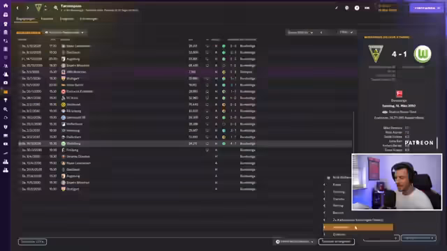 00:38:52Nach dem Jugendintake wird ein Auswärtsspiel gegen TSG Hoffenheim angepfiffen. Trotz starker individueller Leistung von Spielern wie Castelli und Degani geht das Team mit 0:1 gegen einen Tabellenneunten aus. Die Niederlage ist die erste nach sieben Spielen, aber der Streamer bleibt ruhig und sieht es als unausweichlich für einen Aufsteiger.