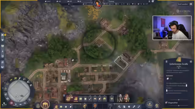 00:18:16Nach einem sechsstündigen Anno-Stream, in dem die Kampagne gestartet und viel gebaut wurde, wurde der Streamer ins Exil geschickt. Dies scheint ein normaler Bestandteil der Kampagne zu sein, da es keine Alternativen gab. Nun beginnt ein Neuanfang auf einer neuen Insel. Der Prokurator bietet finanzielle Unterstützung in Höhe von 10.000 Denaren an, die der Streamer annimmt, um die leeren Schatzkammern aufzufüllen und den Unterhalt der Stadt zu sichern. Die neue Insel, entweder Salzschlick oder Crackmoor, muss besiedelt werden. Die Community entscheidet sich für Crackmoor, und der Streamer beginnt mit dem Aufbau eines Kontors. Er muss sich wieder in die Spielmechaniken einfinden, insbesondere in Bezug auf den Bau von Lagerhäusern und die Verbindung von Produktionsstätten.