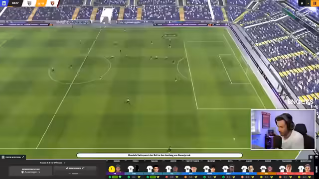 02:47:42Der Streamer bereitet sich mit Kaffee auf die kommenden Aufgaben vor und motiviert das Team, den Sieg zu holen. Es wird überlegt, ob man die Ansprachen auf Italienisch halten sollte, da dies möglicherweise besser verstanden wird. Trotz einiger Schwierigkeiten und Verletzungen versucht man, den Fokus nicht zu verlieren und die Mannschaft auf die anstehenden Spiele vorzubereiten. Ein 1:0-Sieg wird als das Schönste überhaupt gefeiert, und es gibt Lob für Bernabé und Suzuki. Es werden Wechsel vorgenommen, um das Team neu auszurichten, und es wird überlegt, wie man im FM 26 eine Journey von ganz unten starten könnte. Die Idee, ein ganzes FM-Jahr mit einem einzigen Save zu spielen und durch die Ligen der Welt zu tingeln, wird als reizvoll empfunden. Es wird betont, dass es taktisch wichtig ist, nicht immer alles zu riskieren und die Mannschaft wieder ins Spiel zu holen. Die Leistungen von Frankie Deluxe werden erwähnt, und es wird überlegt, wie man die kommenden Spiele gegen Como, Roma, Bologna und Milan angehen soll.