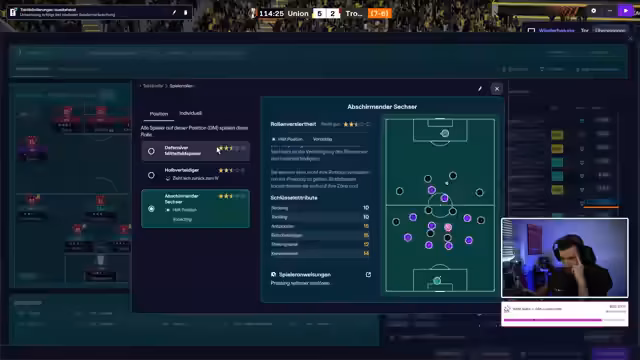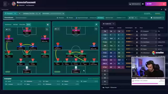 01:48:17Nach 53 Minuten im Testspiel gegen Zürich steht es 5:1, was als gutes Zeichen gewertet wird. Es wird überlegt, ob weitere Transfers nötig sind, insbesondere im zentralen Mittelfeld, da die Spieler Schwierigkeiten hatten, die Taktik zu verstehen. Der Fokus liegt zunächst auf dem aktuellen Spiel. Die Aussicht auf einen internationalen Wettbewerb, sei es Conference League oder Europa League, ist ein großer Anreiz, da ein Weiterkommen in der aktuellen Runde die Teilnahme sichern würde. Dies löst eine Mischung aus Angst, Respekt und großer Vorfreude aus, zumal eine Wette mit 300.000 Schlappi auf dem Spiel steht. Die Aufstellung für das wichtige Spiel in Belgien, wo es regnet, wird besprochen. Das Hinspiel wurde 4:2 in der heimischen Romsas Arena gewonnen, und das Ziel ist es, möglichst lange kein Gegentor zu kassieren und die Null zu halten.