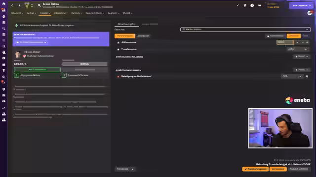 01:38:08Der Streamer gibt Einblicke in die finanziellen Planungen des Vereins. Er erwähnt mögliche Einnahmen durch einen Verkauf von Spielern für schätzungsweise 1,56 Millionen Euro. Mit diesen finanziellen Mitteln möchte er gezielt ins Spiel gegen Gladbach investieren und deutet mögliche strategische Verpflichtungen an. Die finanzielle Stabilität wird als Grundlage für zukünftige Transfers angesehen.