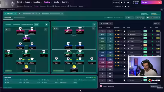 01:27:13Es bestehen weiterhin taktische Unklarheiten, insbesondere im zentralen Mittelfeld. Stöger wird zwar wieder fit, doch sein Einsatz ist problematisch, da er gegen den Ball auf der Position 8 unzuverlässig wirkt. Usun kommt noch nicht in Fahrt. Der Streamer erwähnt seinen groben Zeitplan: Er ist bis 15 Uhr aktiv, kurz vor dem Bundesliga-Start, hat aber noch YouTube-Inhalte zu produzieren. Er möchte heute Stögers Form kritisieren, um zu zeigen, dass er ein wertvoller Spieler sein kann.