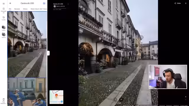 02:11:54Zwischendurch unternimmt der Streamer virtuelle Städte- und Stadiontouren. Er besucht den Spielort Aglianese, nördlich von Florenz, und erkundet das Umfeld, darunter eine Tankstelle und ein Café. Auch das Stadion Stadio G. Bellucci wird gezeigt. Eine weitere Reise führt nach Fanfulla, einem südlichen Vorort von Mailands, und später nach Borgo San Donino bei Parma, um den nächsten Gegner zu analysieren und das Stadion zu inspizieren.