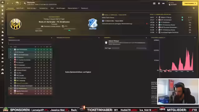 01:55:04Streamer behandelt administrative Einstellungen für Mitarbeiter und stellt Fragen bezüglich eines zurückgezogenen Spielmachers. Er bemängelt die hohen Kosten für potentielle Neuzugänge wie Sander und Rico Henry, wobei letzterer als alter Engländer skeptisch gesehen wird. Er plant, sich den niederländischen Verein Roda Kerkrade wieder anzusehen.