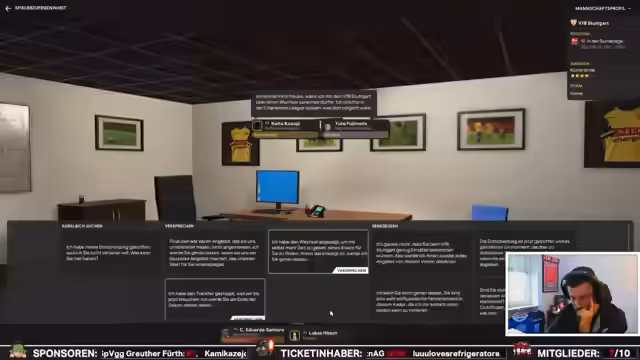 00:12:35Der Streamer spricht über seine Pläne für die neue Saison im Football Manager, insbesondere über das 4-2-2-2-System und Transfers. Er erwähnt bereits getätigte Verkäufe wie Krasincia für 7 Millionen und zieht in Erwägung, Argo Besic für 2,6 Millionen zu verpflichten, obwohl der Spieler kein Interesse an einem Wechsel hat. Der Streamer betont seine intensiven Bemühungen, diesen Spieler zu verpflichten.