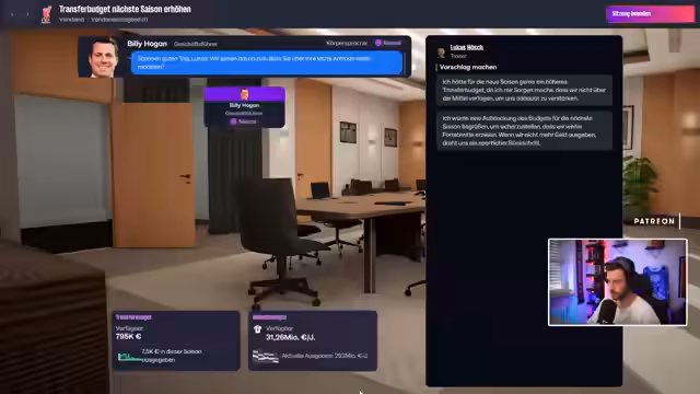 03:20:54Das Transferfenster beginnt mit intensiven Verhandlungen. Angebote für Spieler wie Joachim Neves werden evaluiert, wobei ein Angebot von Barcelona in Höhe von 40 Millionen Euro zunächst zurückgewiesen wird. Gleichzeitig werden Spieler wie Lofthaus an Manchester City verkauft und nach Alternativen gesucht. Besonderes Augenmerk wird auf Spieler gelegt, die in England ausgebildet wurden, um den Kader langfristig zu stärken und weiterzuentwickeln.
