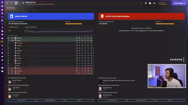 02:37:16Im Spiel gegen Napoli führt Parma, nachdem ein schwacher Post von Zannoli zum Gegentor führte. Trotz einer schwierigen Viertelstunde bleibt das Team im Spiel. Der Streamer betont, dass es schlimmere Gegner gibt und zufrieden mit der Kampfbereitschaft ist. Gute Aktionen werden gezeigt, wie ein Doppelpass, doch es fehlt an Effizienz. Die zweite Saison neigt sich dem Ende zu, und die Punkteausbeute ist im Vergleich zum Vorjahr mit 35 Punkten statt 46 deutlich geringer, obwohl mehr Tore geschossen wurden.