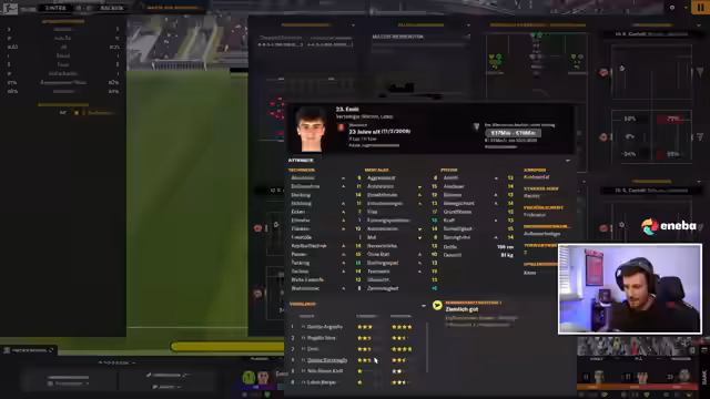 01:49:17Der Streamer analysiert laufend das aktuelle Spiel im Manager. Nach einem frühen Tor diskutiert er die defensive Stabilität und stellt Außenverteidiger zurückhaltender ein, um Lücken im Pressing zu vermeiden. Er wechselt Spieler wie Castelli und Wagner, um den Spielstil anzupassen. Trotz taktischer Anpassungen bleibt die Leistung unkonstant, was zu einer weiteren Niederlage führt. Die anhaltende Formkrise mit der vierten Pleite in Folge veranlasst ihn zu einer taktischen Neuausrichtung mit einer Spielsystemänderung.