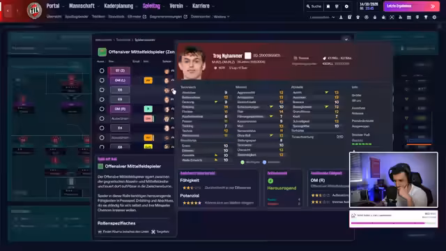 01:08:03Der Streamer widmet sich dem Scouting von Spielern, um potenzielle Verstärkungen für Tromsø IL zu finden. Ein 19-jähriger norwegischer Innenverteidiger namens Sander Granheim von Brann wird evaluiert, der sich technisch noch verbessern müsste, aber als vernünftiger Backup in Frage käme. Anschließend wird Yuki Yamamoto, ein 20-jähriger Japaner von Renga, unter die Lupe genommen, dessen Ablösesumme das Hauptproblem darstellt. Die finanziellen Mittel des Vereins liegen aktuell bei 3,7 Millionen. Es wird auch nach zentralen Mittelfeldspielern gesucht, darunter Otto Rosengren von Malmö für 6,2 Millionen und Silas Andersen von Hecken. Der Streamer äußert den Wunsch, die norwegische Herren-Nationalmannschaft genauer zu scouten, insbesondere jüngere U21-Spieler, da die Ablösefreiheit von Sebastian Welten-Simonsen überprüft wird, dessen Jugendvertrag bald ausläuft. Die Wichtigkeit, Spieler für die U19 und zweite Mannschaft verfügbar zu machen, wird betont, da dies bisher vernachlässigt wurde. Die aktuelle Situation des Vereins erfordert eine Platzierung in den Top 4 am Ende der Saison, weshalb die anstehende Partie als sehr wichtig eingestuft wird.